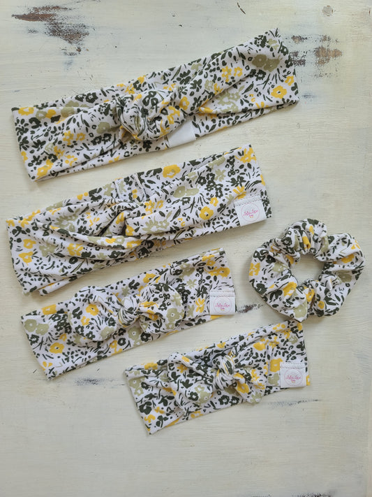 Green & Yellow Floral Scrunchie