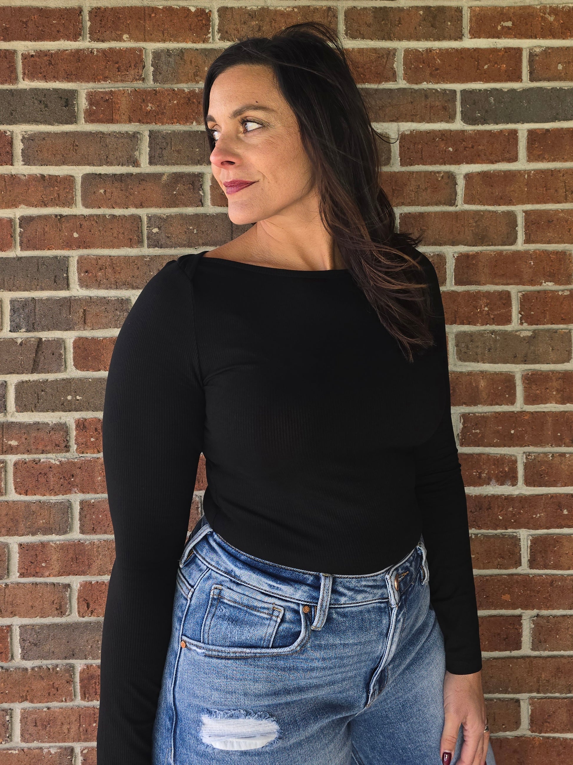 Meet your new wear-with-everything essential. Our Micro Rib Boat Neck Bodysuit is available in two stunning, wardrobe-perfect shades, classic Black and rich Cranberry. This sleek, minimal silhouette instantly elevates any outfit with its clean lines, flattering neckline, and smooth, micro-ribbed texture. Designed to fit like a dream, this bodysuit offers a soft stretch, a refined boat neckline, and long sleeves that create an elegant, streamlined shape. It’s the perfect base layer for your fall-to-winter styling. The snap closure ensures easy wear while keeping your look smooth, tucked, and polished all day long. This piece is a true closet staple.