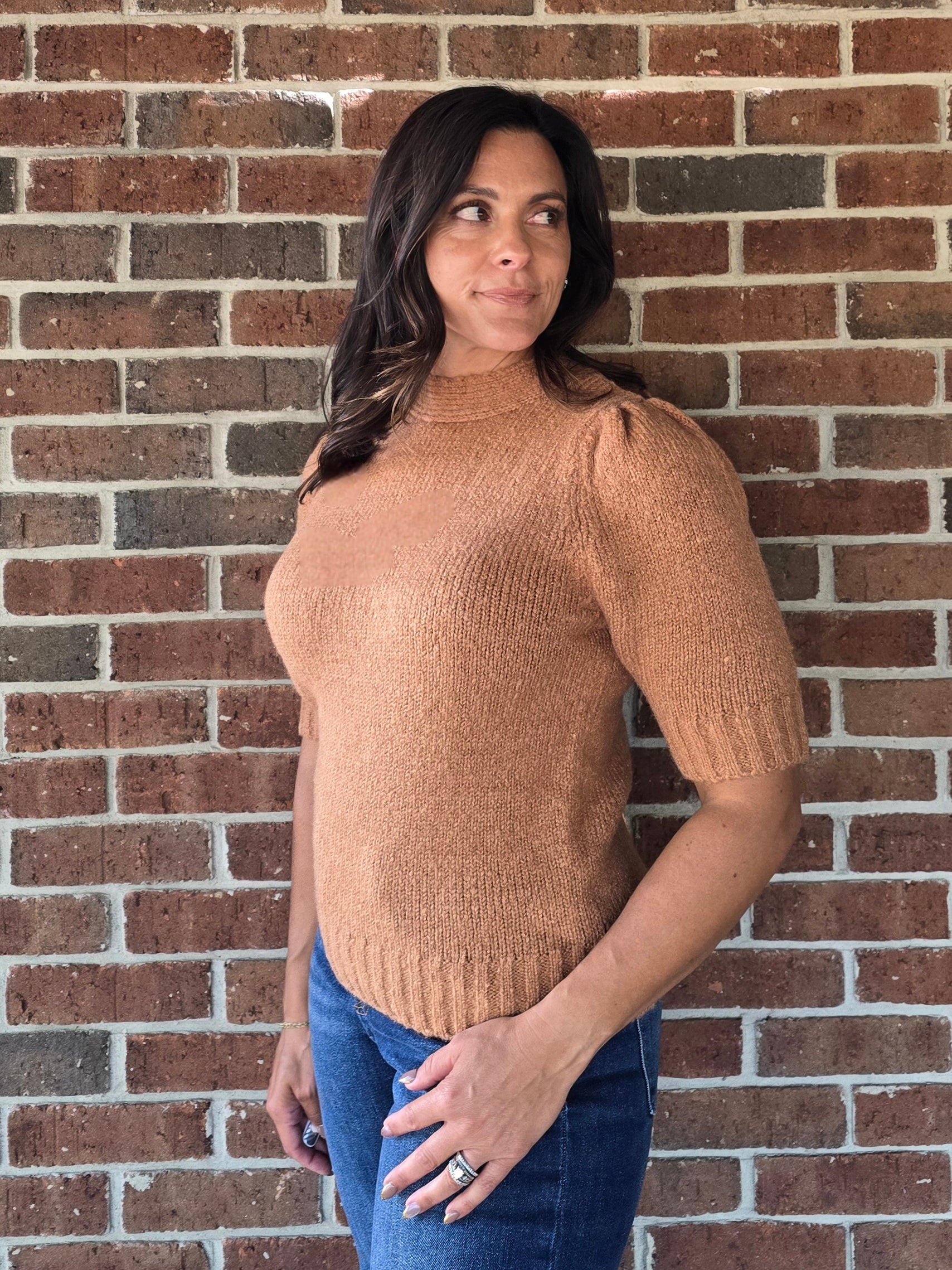 This Mock Neck Tie-Back Sweater is crafted with timeless style and superior quality. Featuring a classic silhouette with refined details like a mock neckline, cutout tie-back detail, and ribbed trim, the piece adds elegance to any look. The puff sleeves with gathered shoulders create a stylish contrast. Perfect for any wardrobe.