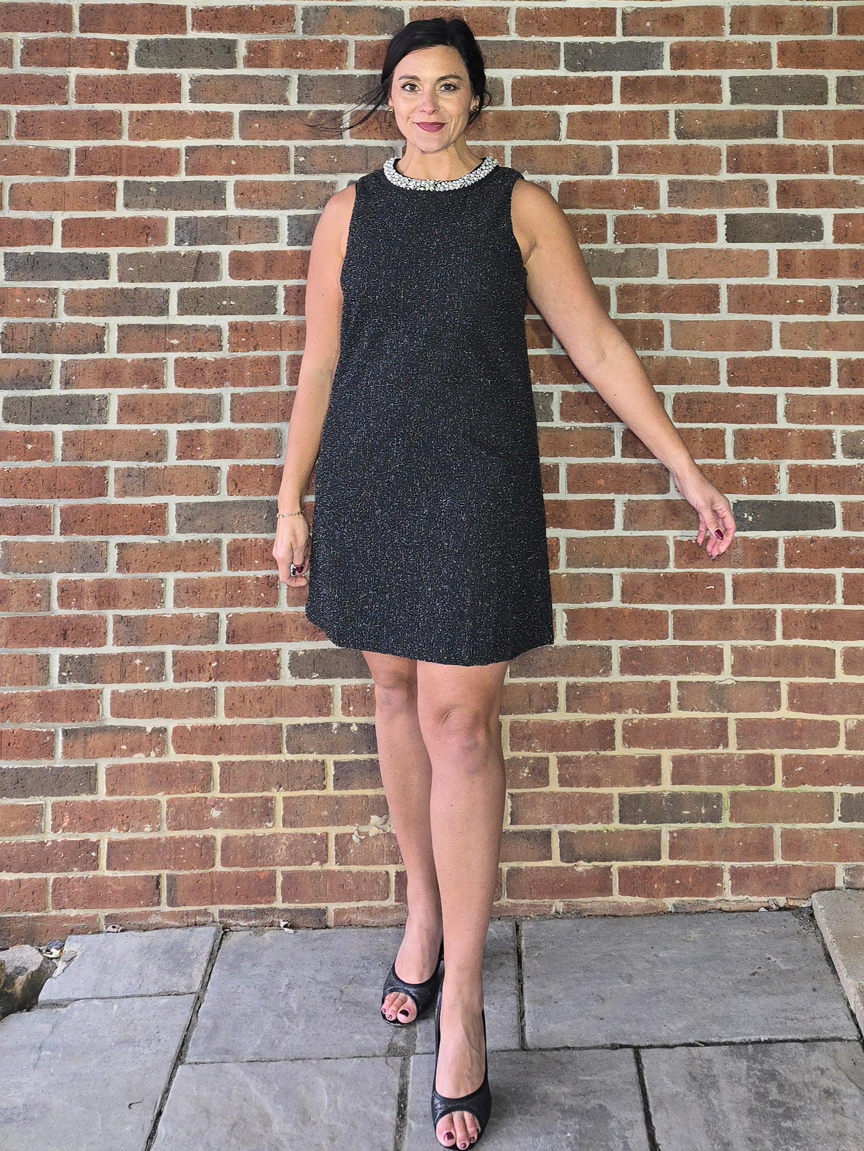 Elevated elegance meets effortless glamour in this stunning stretch tweed mini dress. Designed with a timeless shift silhouette, it features a luxe jewel-trim neckline that adds just the right amount of shimmer so you can skip the necklace and shine with ease. Crafted from a soft, subtly textured tweed with comfortable stretch, it’s made to move with you from holiday soirées to date nights and chic girls’ gatherings. Sleeveless with a clean, modern fit, this dress is one of those rare pieces that feels equally classic and fashion-forward.