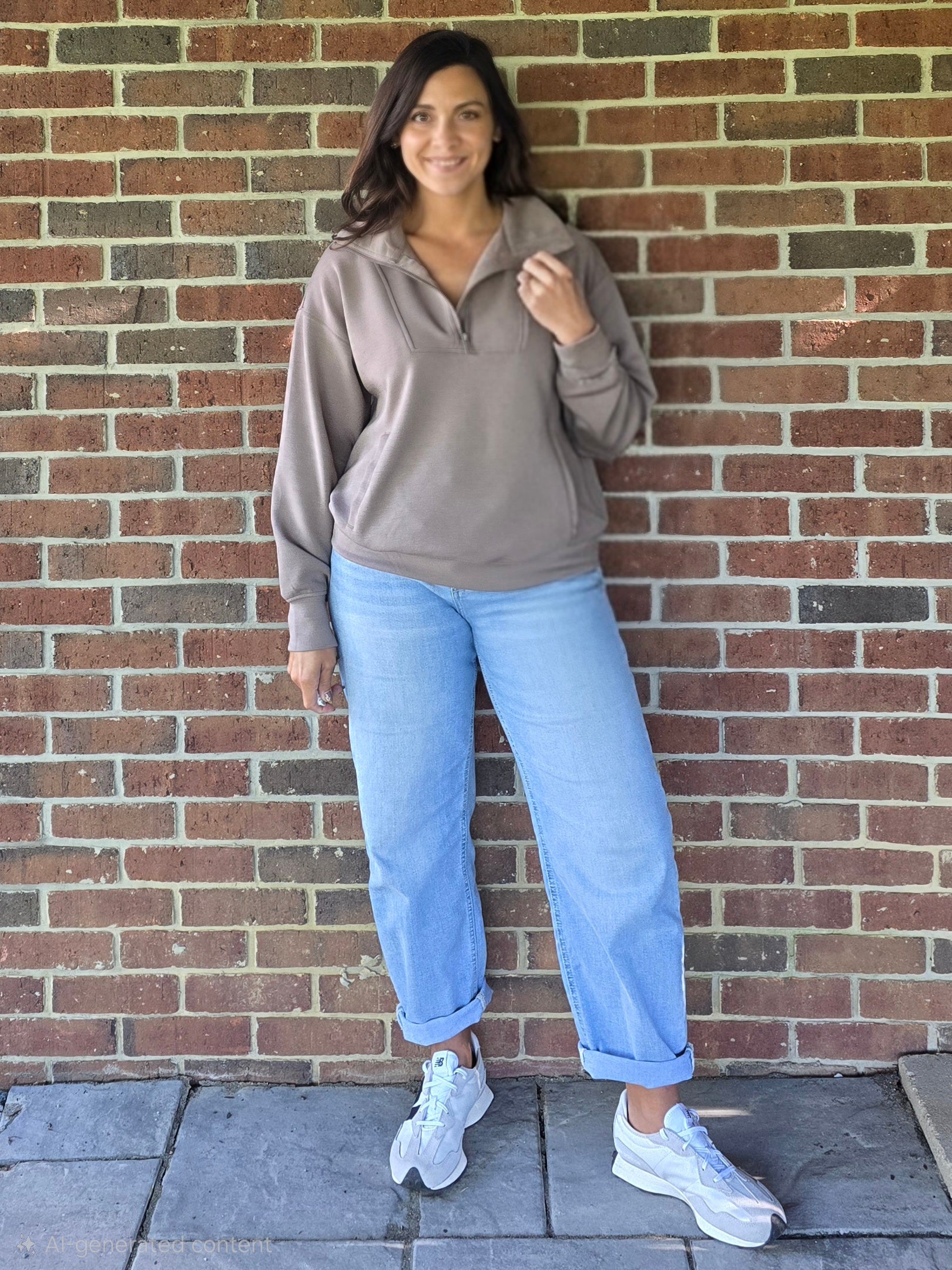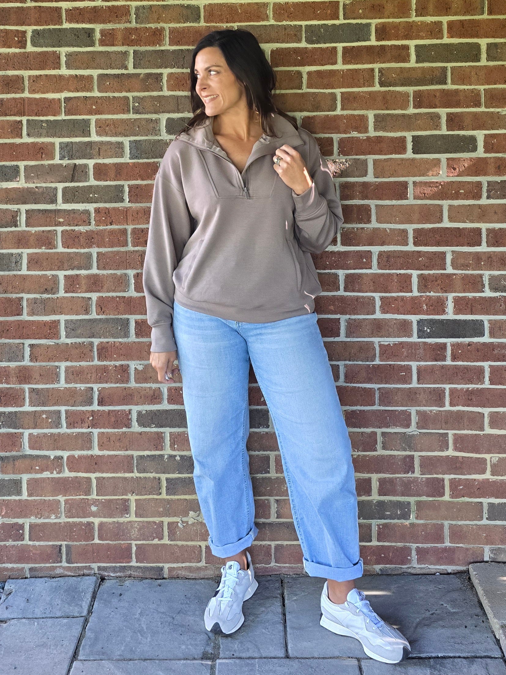 Upgrade your casual look with the effortless comfort of our Modal Scuba Quarter Zip Pullover. Crafted from a premium modal scuba fabric, this piece feels buttery soft against the skin and delivers a cooling touch you’ll love wearing all day. Its relaxed fit, dropped shoulders, and wide cuff sleeves strike the perfect balance between laid-back and luxe. The functional half-zip neckline adds versatile styling options, while the spacious kangaroo pocket brings both coziness and convenience. Finished in a timeless neutral tone, this pullover pairs seamlessly with denim or leggings. Whether you’re on the go or keeping it casual, this elevated basic makes chic comfort look easy.