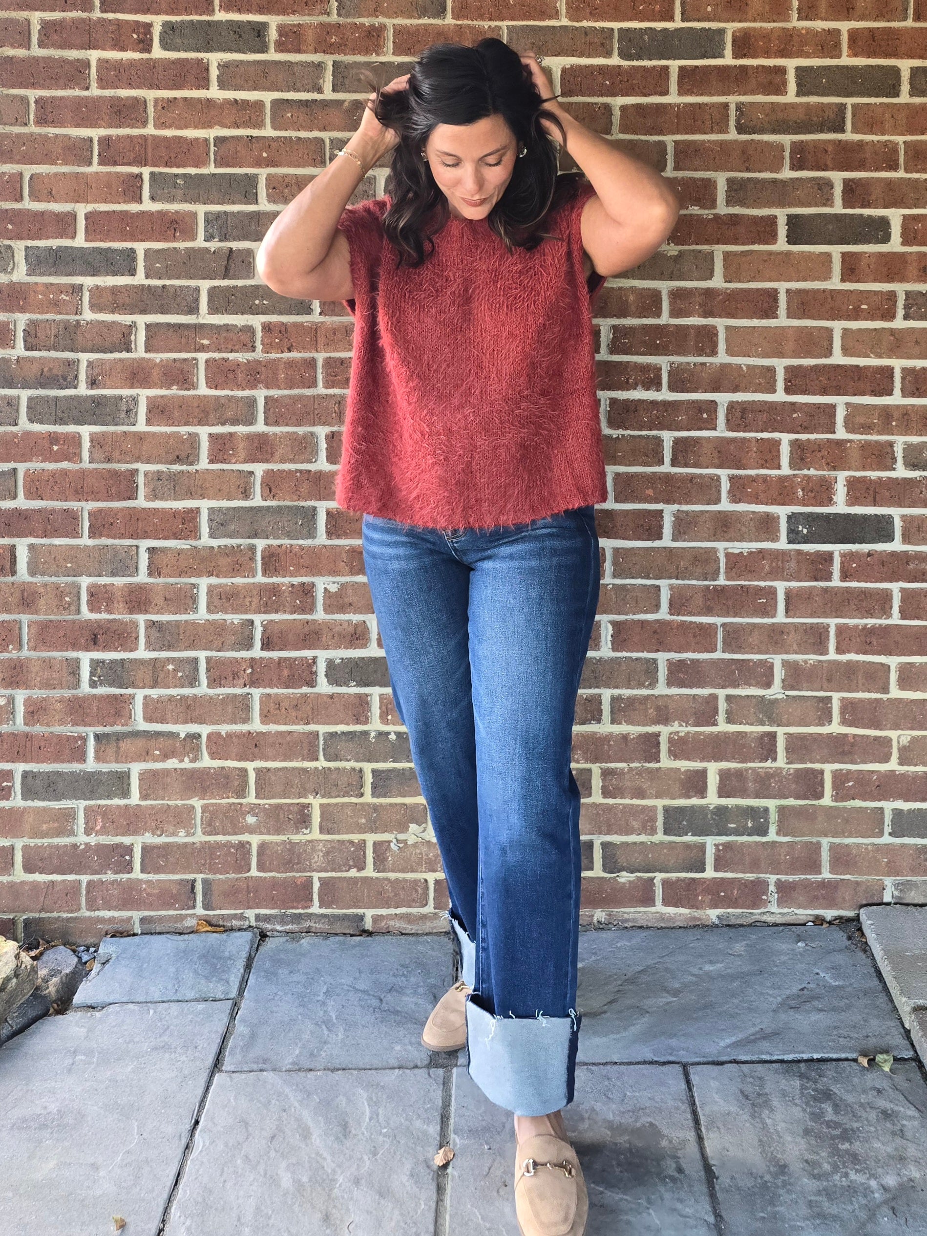 Wrap yourself in luxury with our Mohair Sweater in a rich burgundy hue. This soft and timeless piece features a gorgeous satin back tie for an elevated and sophisticated look. With a loose and relaxed fit and short sleeves, it's perfect for the Fall season and beyond. Treat yourself to a classic and elegant addition to your wardrobe.