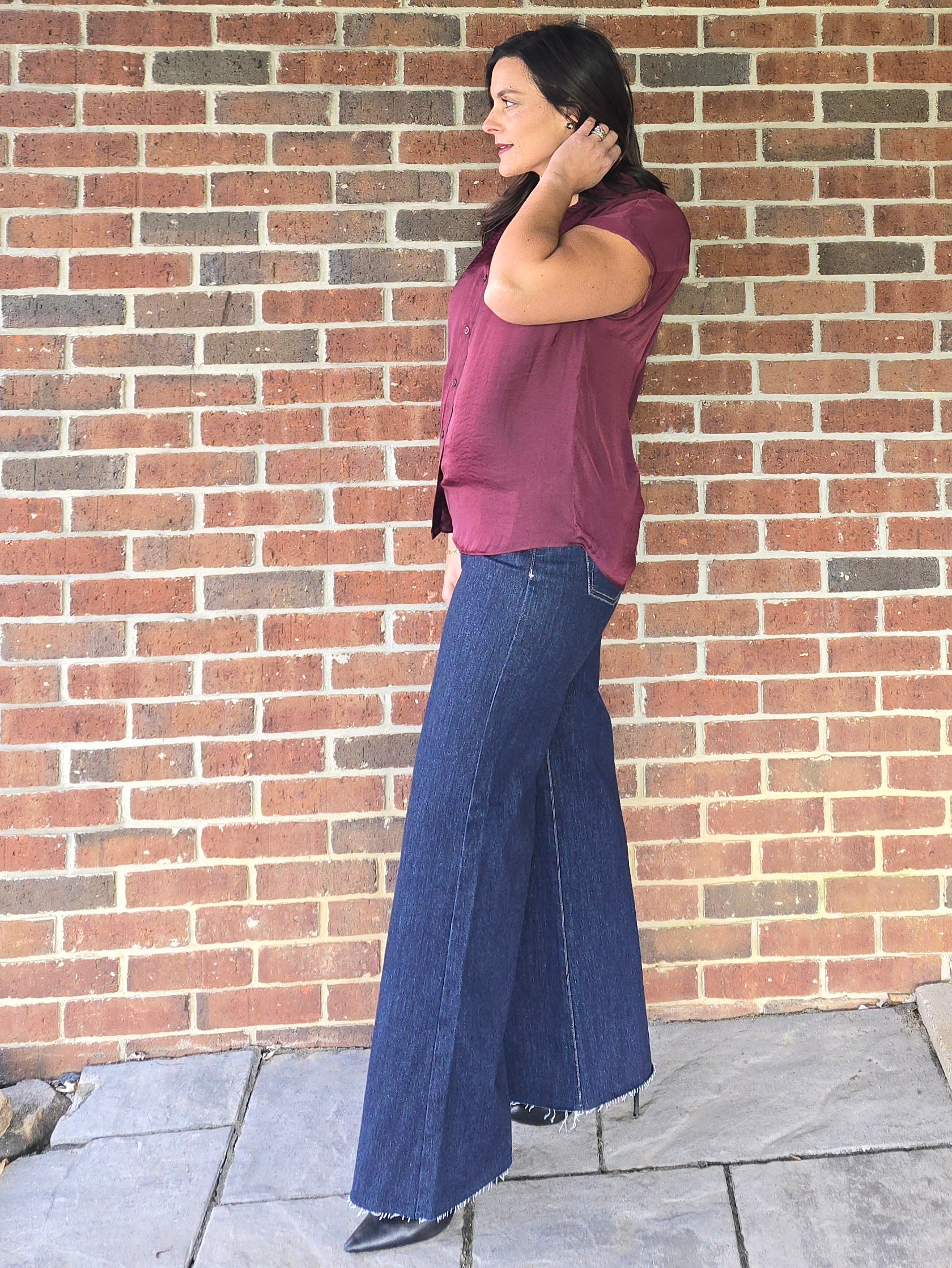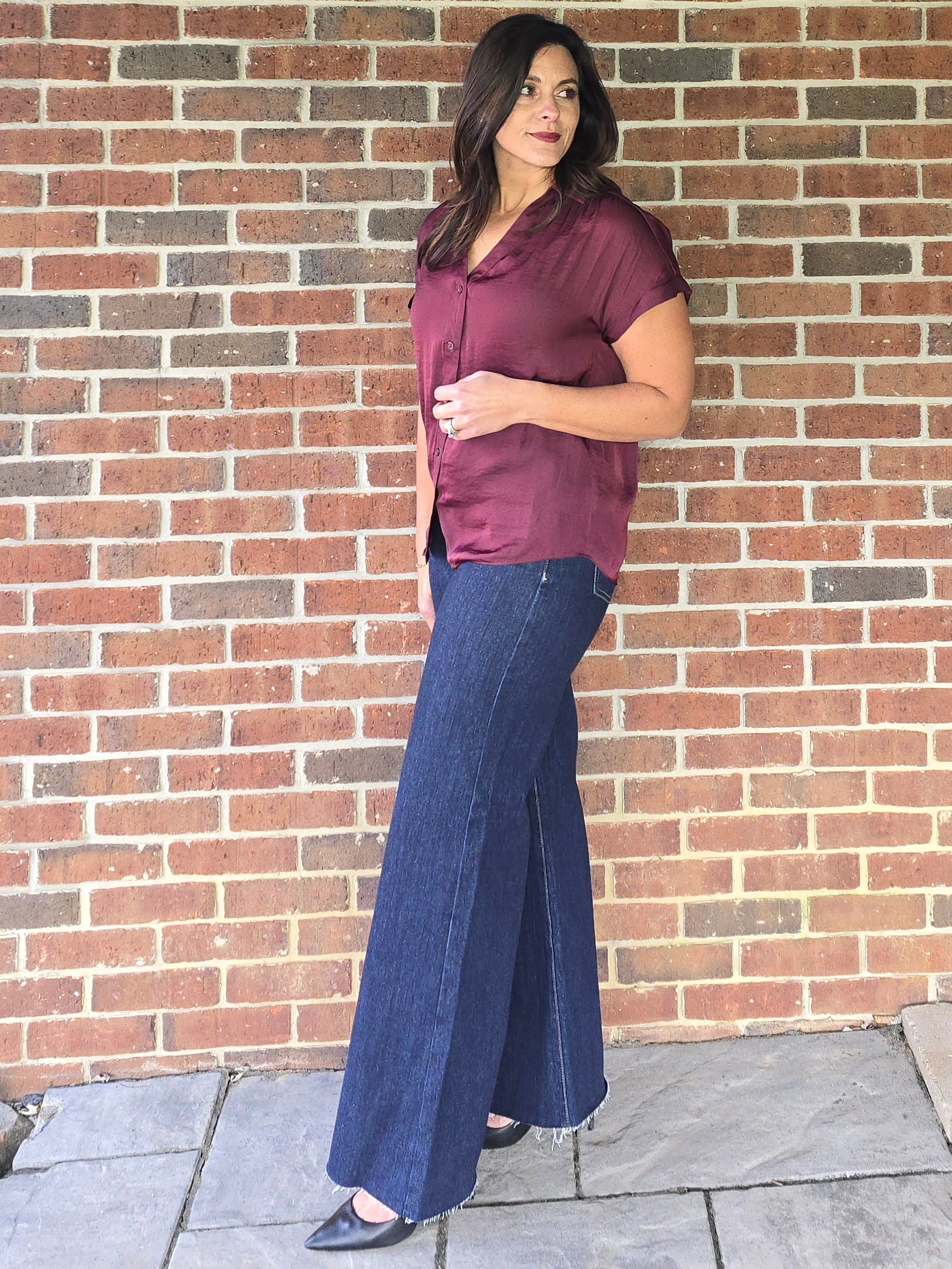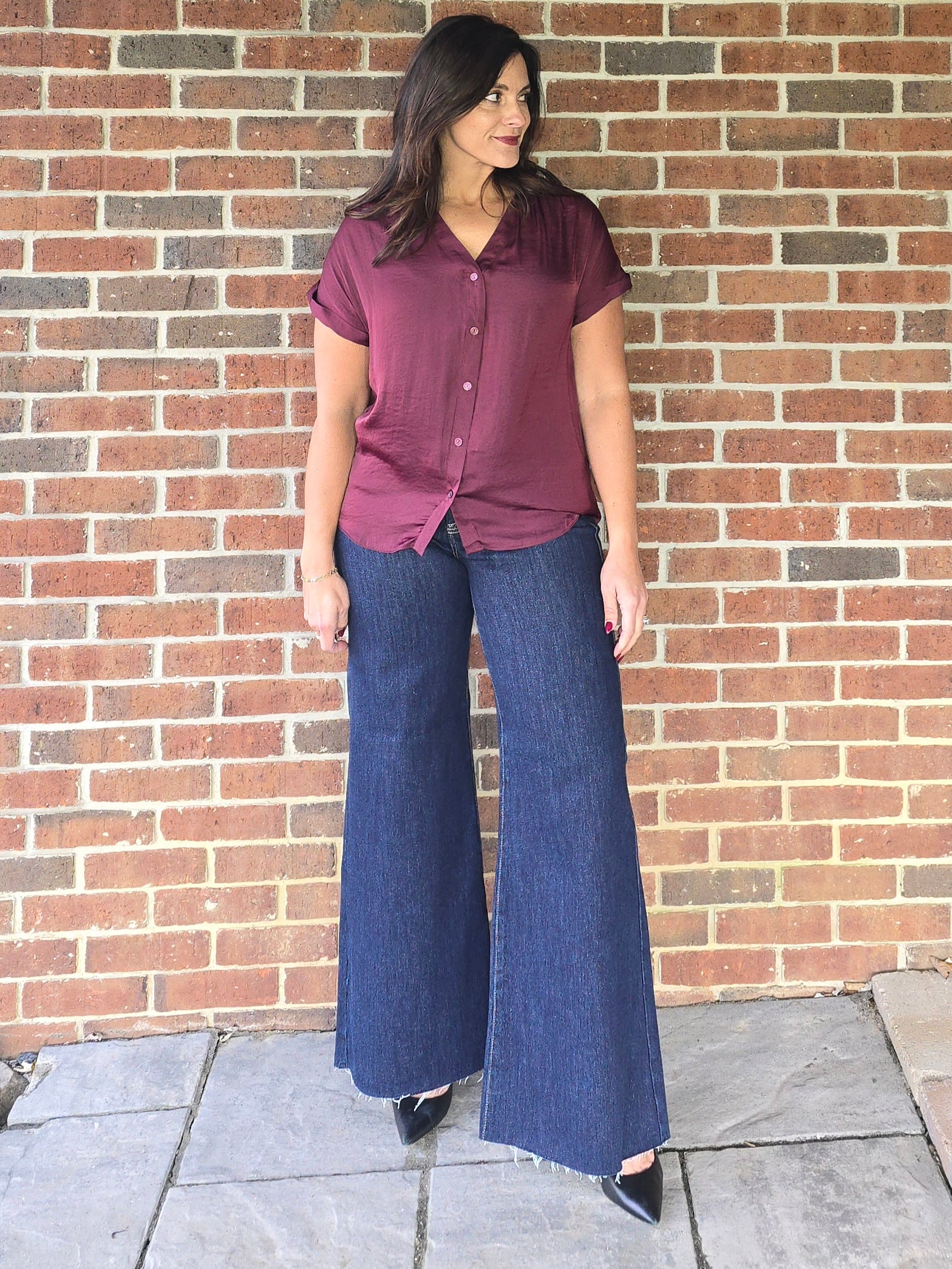 Effortlessly refined and endlessly versatile our Silky Short Sleeve Button Blouse is the definition of timeless sophistication. Available in two rich, wearable hues, Forest Green and Wine, this top features a soft, silky drape and gathered details in the front and back that flatters every figure. The relaxed fit, button-down front, and cuffed short sleeves give it a modern, polished feel that transitions seamlessly from workday chic to weekend ease. Lightweight and luxuriously smooth, this blouse pairs beautifully with trousers, denim, or skirts for a look that’s both elevated and effortless. Perfect for layering under blazers or styling solo for a simple yet sophisticated vibe.