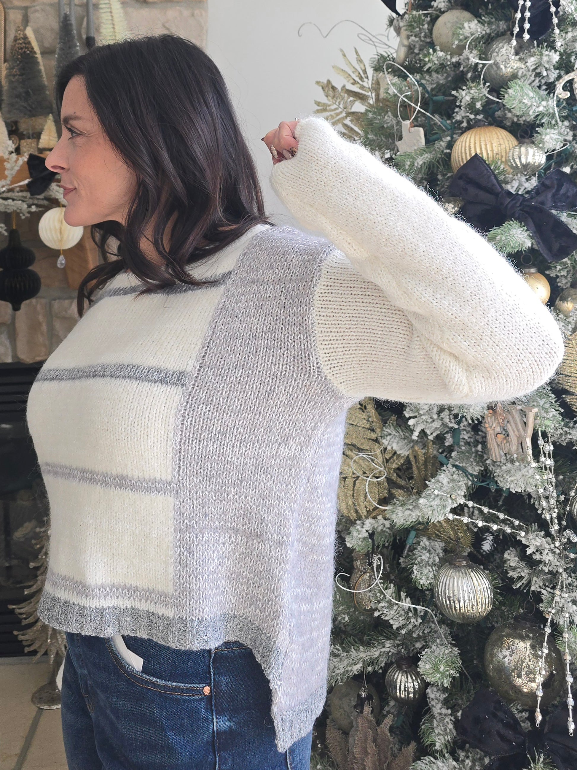 Winter White + Grey Colorblock Stripe Sweater